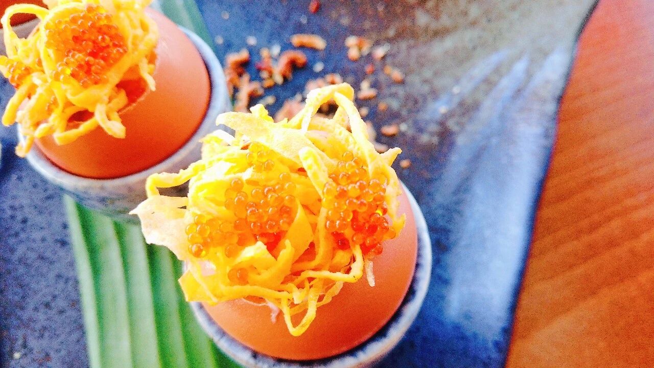 鲜香的鱼籽酱铺满柔嫩的蛋皮丝上